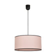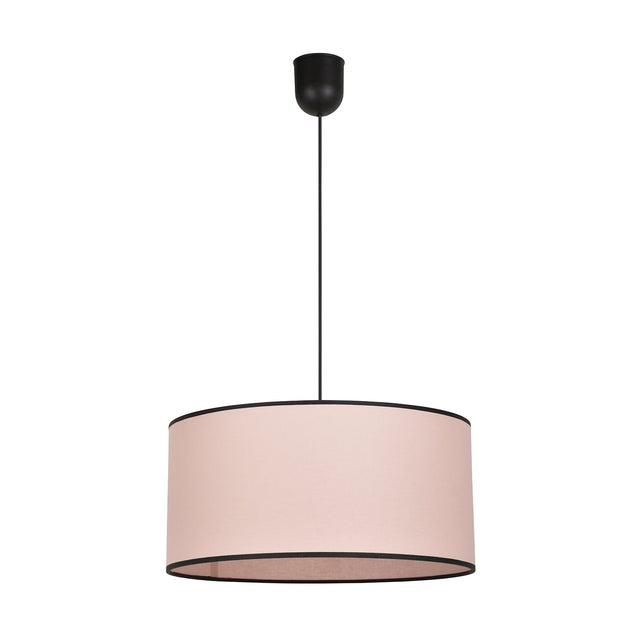 Suspension Douceur cylindre en coton. Bordure contrastée en polycoton. Coloris : rose/noir. IP20. D38cm - H18cm. Classe 2. E27 - 15W.