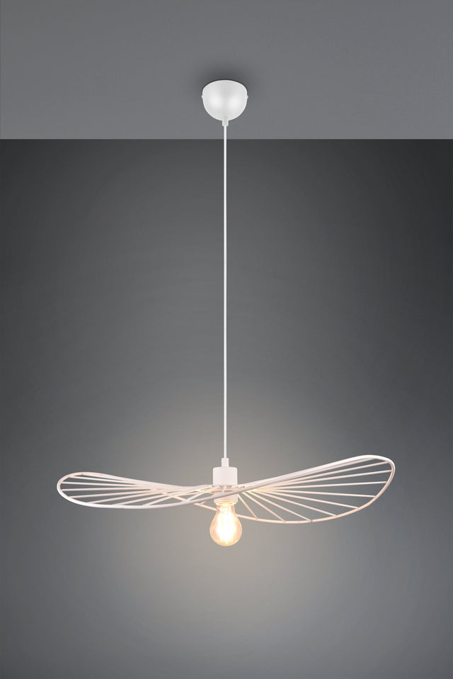 Suspension Chapeau métal blanc mat, diamètre 60 cm, hauteur 150 cm, E27.