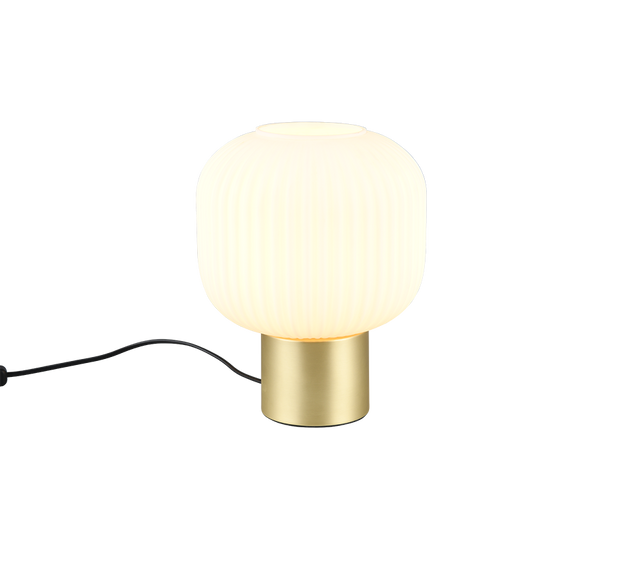 Lampe DIVA au design épuré combinant métal doré et verre blanc laiteux. Cette suspension élégante de 26 cm de hauteur et 20 cm de diamètre s'adapte à tous les intérieurs modernes. Compatible avec ampoule E27 standard, elle offre une diffusion lumineuse douce et homogène. Finition premium TRIO, parfaite pour créer une ambiance raffinée dans votre entrée, cuisine ou chambre.