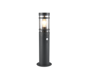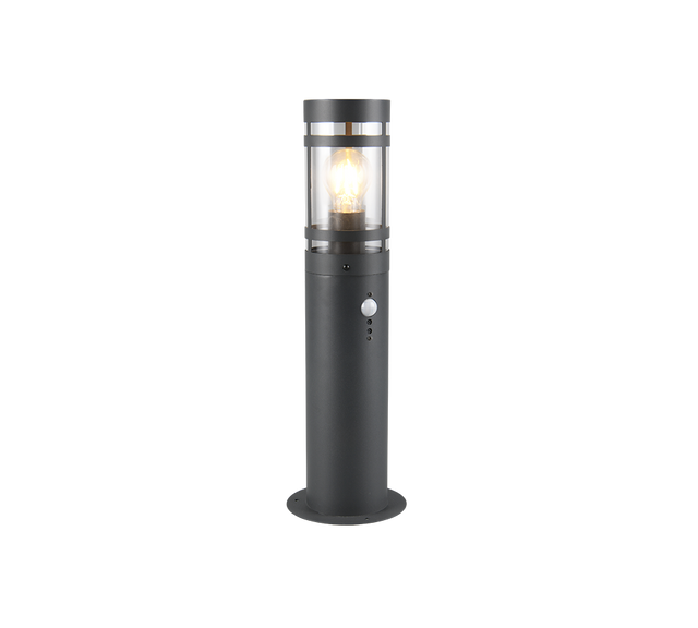 Borne métal anthracite, hauteur 50 cm, diamètre 15 cm, E27, IP44, détecteur de mouvement.