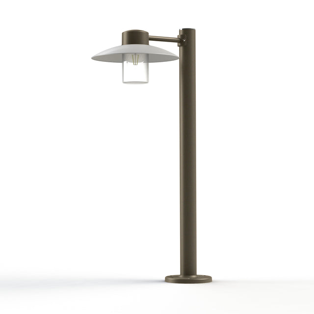 Borne AUBANNE en aluminium, E27, IP44, classe 1, réflecteur en polycarbonate opale, diffuseur verre clair. Teinte Grès 054. Garantie 25 ans anticorrosion sur l'aluminium