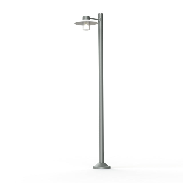 Lampadaire 1 tête AUBANNE en fonte d'aluminium, E27, IP44, classe 1, réflecteur en polycarbonate opale, diffuseur verre clair. Teinte Gris métal 023. Garantie 25 ans anticorrosion sur l'aluminium