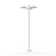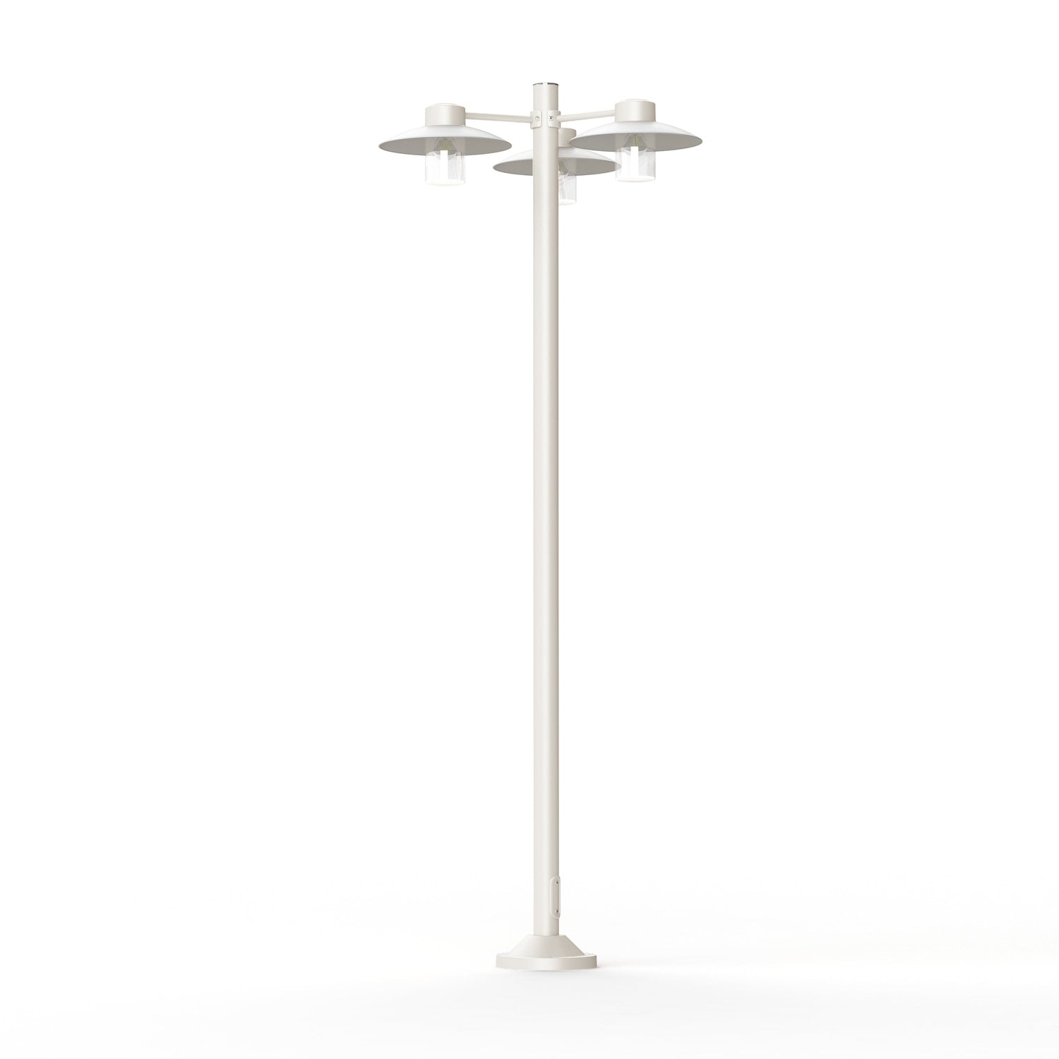 Lampadaire 3 têtes AUBANNE en fonte d'aluminium, E27, IP44, classe 1, réflecteurs en polycarbonate opale, diffuseurs verre clair. Teinte RAL 9010 Blanc pur 101. Garantie 25 ans anticorrosion sur l'aluminium