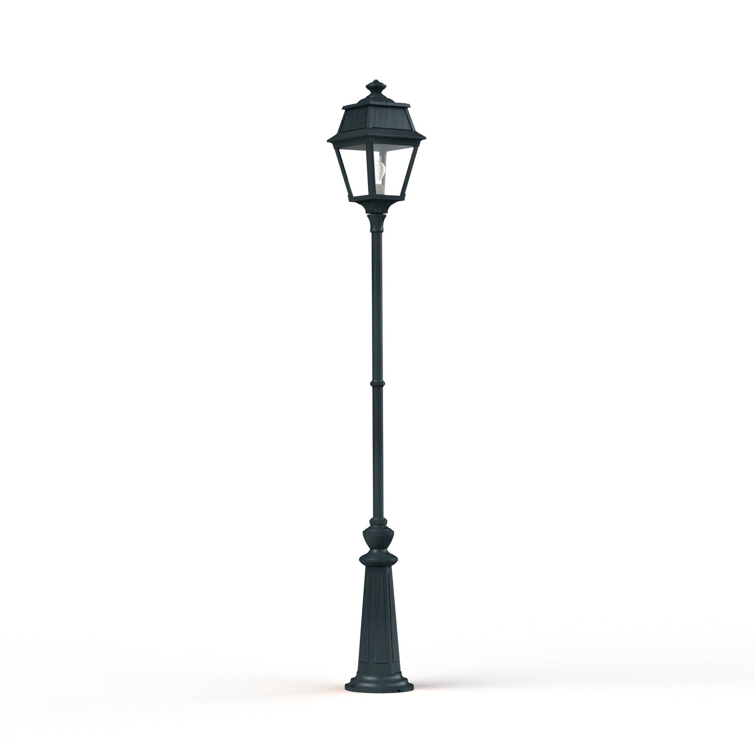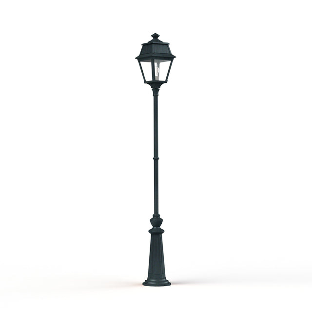 Lampadaire 1 tête AVENUE 2 en fonte d'aluminium, E27, IP44, classe 1, diffuseurs verre clair. Finition Patine vert de gris 008. Garantie 25 ans anticorrosion sur l'aluminium