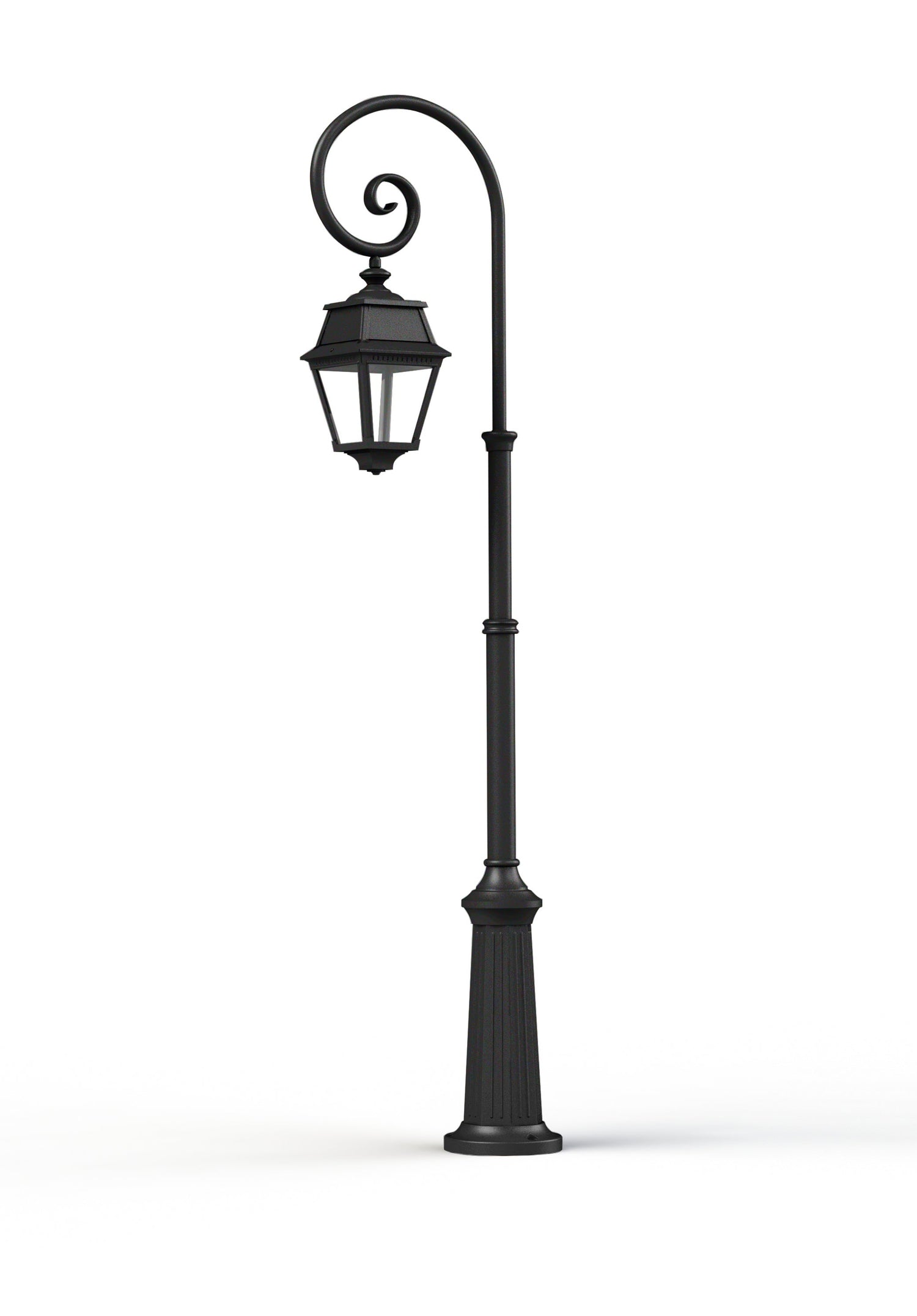 Lampadaire crosse AVENUE 2 en fonte d'aluminium, LED 13W 2700°K, IP44, classe 1, diffuseurs verre clair. Teinte RAL 9005 Noir foncé 000. Garantie 25 ans anticorrosion sur l'aluminium