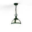 Suspension chaîne BOREAL, en aluminium, E27, IP44, IK08, classe 1, globe Ø200 méthacrylate opale. Teinte RAL 6009 Vert anglais 019. Garantie 25 ans anticorrosion sur l'aluminium