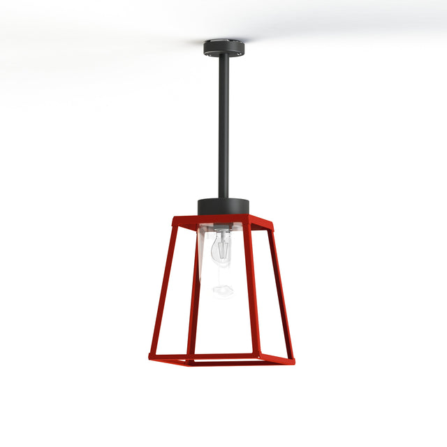 Plafonnier LAMPIOK 2 en aluminium, E27, IP65, classe 1, diffuseur verre clair. Cage : teinte RAL 3013 Rouge tomate 110. Tige : teinte RAL 7021 Gris noir 107. Garantie 25 ans anticorrosion sur l'aluminium