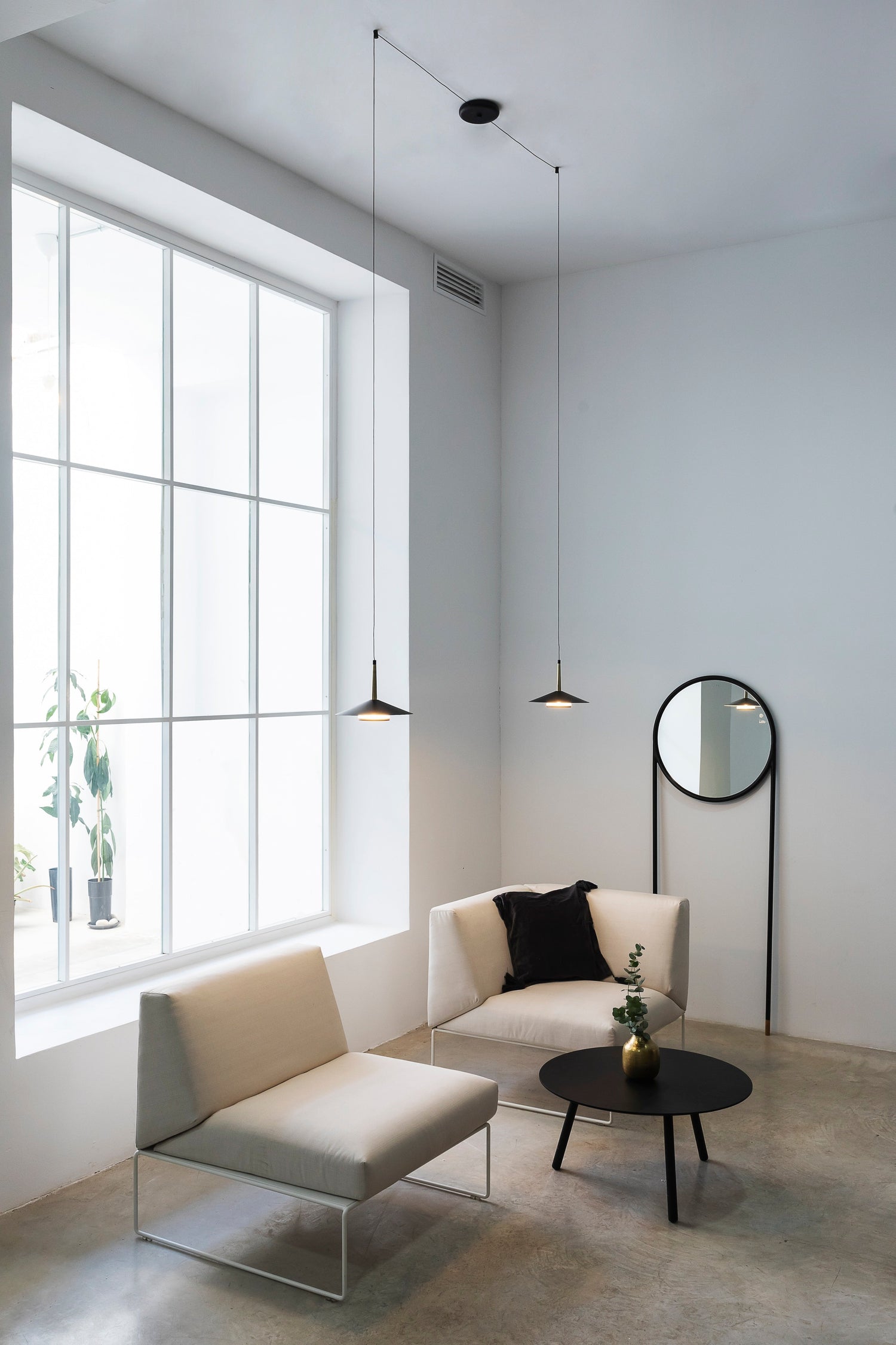 Suspension araignée Orion 2 lumières en aluminium noir et or patiné 16w 1180 lumens 3000k, chaque abat jour en en aluminium fait 25 cm, longueur de câble 305 cm. Eclairage direct indirect, idéal pour les points de lumières déportés, pour les plans de travail, les tables des repas. Livrés avec 2 bloques tables.