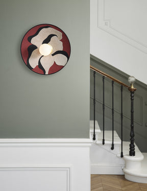 Applique forme conique bi-matière en coton. Equipée d’une patère murale en métal peint finition sablée et adaptable DCL. Coloris : nostalgia massala. IP20. D40cm - P14cm. Classe 2. E27-60W