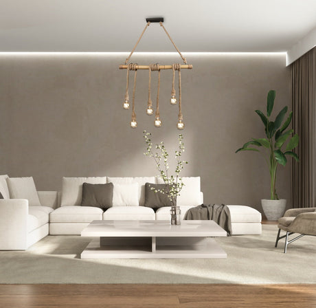 Suspension SABINA imitation Bois 5 lumières E27 Mantra 6175