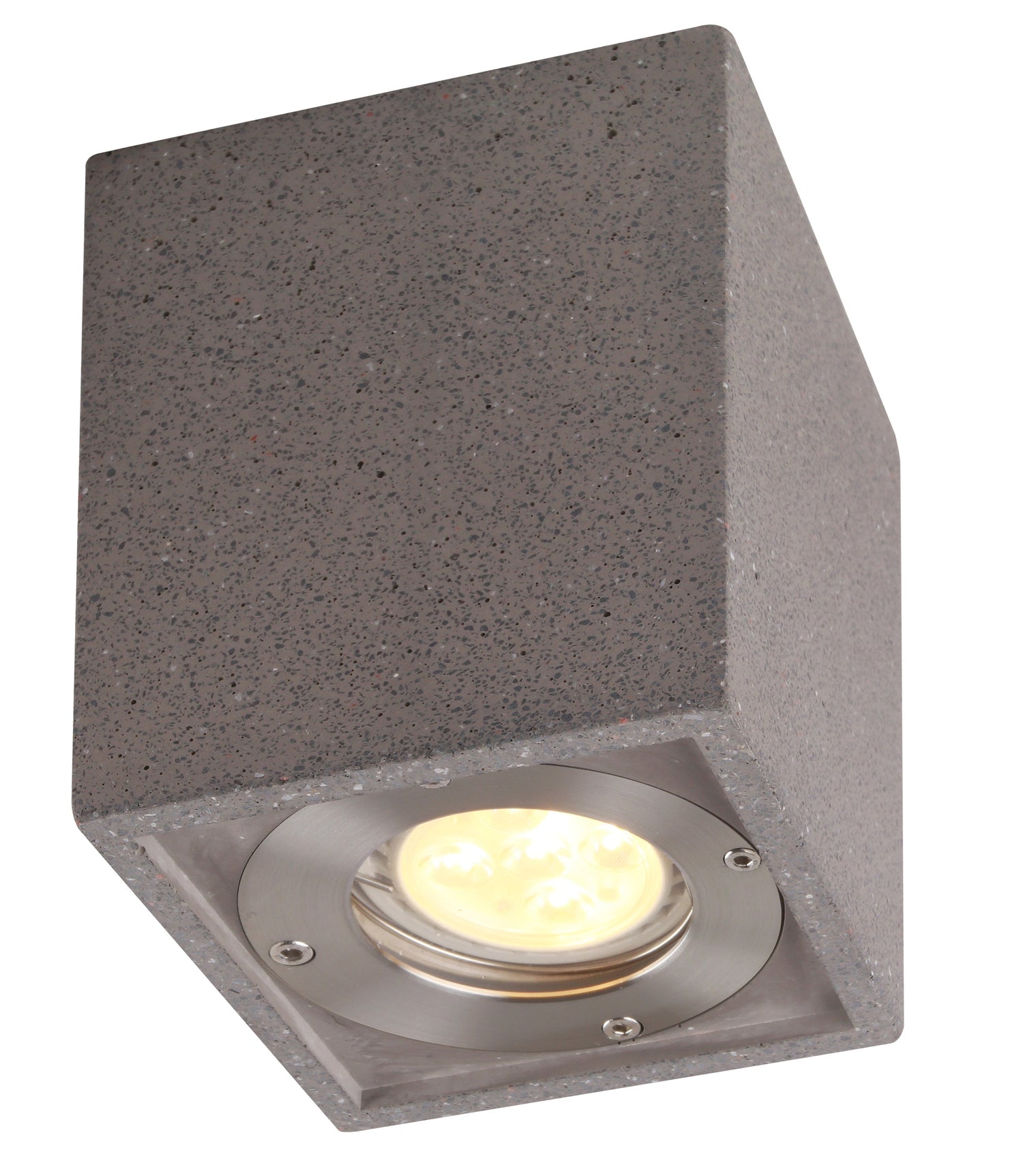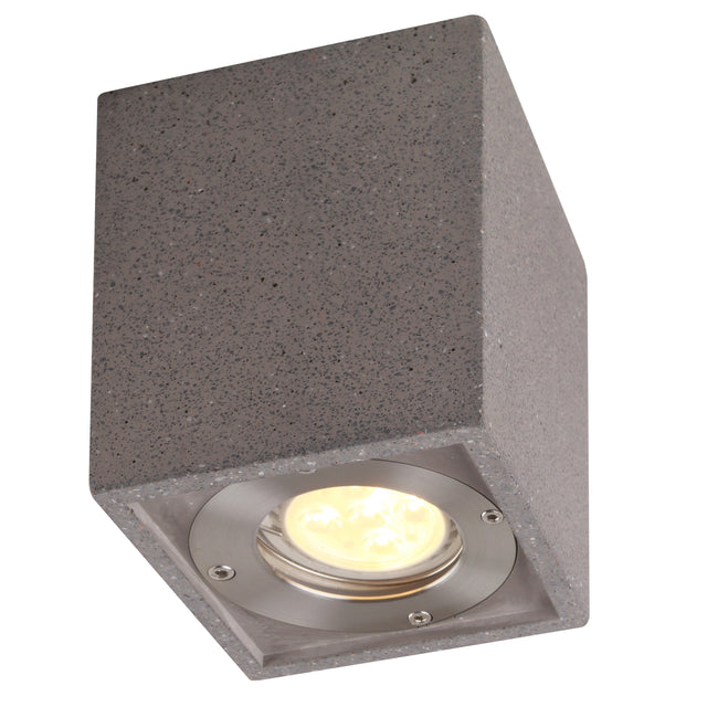 Plafonnier Levi en béton gris foncé 9 cm x 9 cm, hauteur 13 cm GU10 IP65 non fournie.