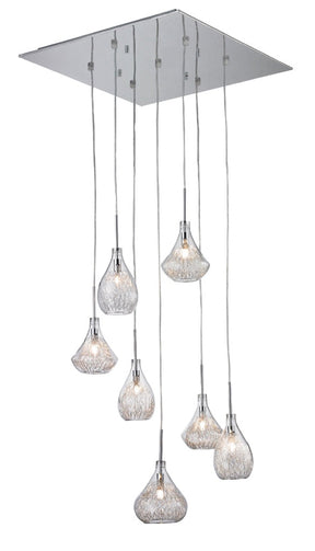 Cette suspension Ora allie élégance et modernité avec son design en métal chrome et ses 7 verres transparents. Son fil de fer intérieur leur confèrent un style unique. Avec un diamètre 60 cm et une hauteur de 150 cm maximum, elle s'adapte parfaitement aux intérieurs contemporains. Ampoules G9 non fournies. Possibilité de choisir vos verres contactez nous.