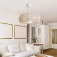 Plafonnier ventilateur BALI  en fibre naturelle et aluminium blanc 18w 2352 lumens 3000-6000k, diamètre 50 cm, hauteur 33,5 cm ou 47 cm. Il dispose de 6 vitesses, mode réversible hiver-été. Moteur DC.