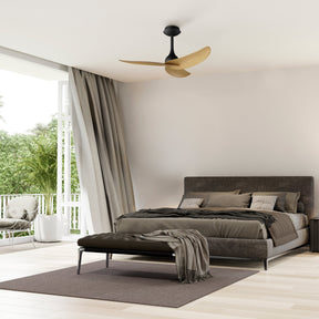 Plafonnier ventilateur IPANEMA noir et aspect bois Mantra 9041